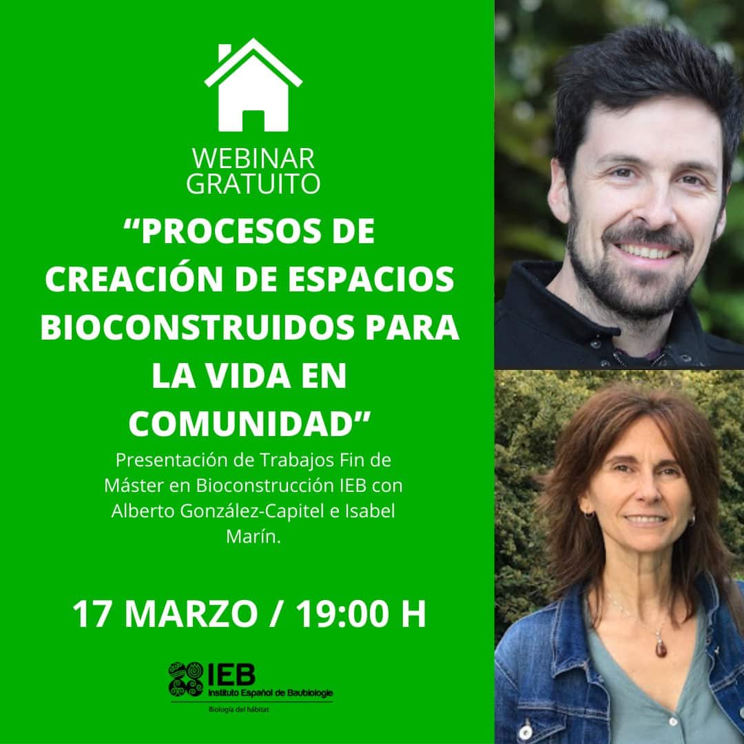 En este webinar gratuíto de presentación de Trabajos Fin de Máster en Bioconstrucción IEB ofreceremos dos miradas diferentes en torno a la creación de estos espacios para la comunidad. Alberto tratará el tema desde una comunidad vecinal de barrio e Isabel desde una comunidad doméstica de convivencia. Si la bioconstrucción debe favorecer la salud en las personas, también contribuirá a facilitar comunidades humanas sanas y equilibradas, resilientes y ecosociales.